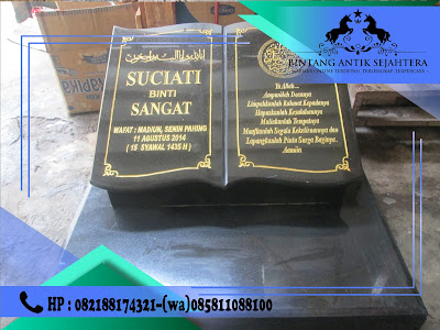 Batu Nisan Marmer Surabaya untuk anda yang ingin memesan batu nisan kuburan untuk mengganti nisan yang lama atapun yang sudah usang anda bisa memesan di tempat kami Bintang Antik Sejahtera yang menyediakan berbagai banyak model dan bentuk nisan seperti model nisan batu kali terbaru minimalis tentunya bisa anda sesuaikan dengan keinginan anda untuk keluarga tercinta yang telah meninggal, nisan sendiri memiliki fungsi sebagai penanda untuk orang yang telah meninggal untuk penulisan nama tanggal lahir serta wafta nya agar saat berziarah mengirimkan doa mudah dikenali.Batu Nisan Marmer Sidoarjo selain dari bahan batuan marmer dan granit kami juga membuatkan model nisan batu kali terbaru minimalis yang bahan utama nya adalah abtuan kali dengan kwalitas pilihan sehingga banyak sekali peminat nya, dalam proses pembuatan nisan batu kali memerlukan waktu kurang lebih 2 minggu untuk pemotongan bahan dan letter nama nya.